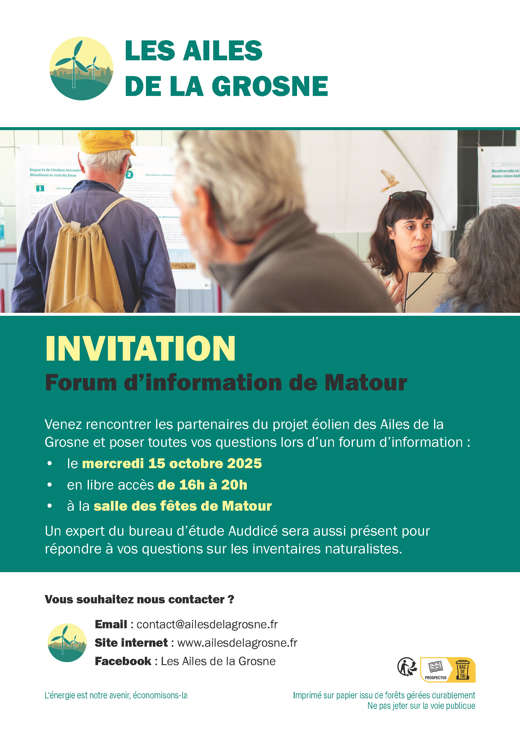 Un forum d’information public est organisé afin de permettre aux habitants d’échanger avec les partenaires du projet éolien local "Les Ailes de la Grosne"